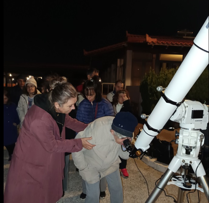 Το Ηλιοσκόπιο επισκέφθηκε τη στέγη φιλοξενίας & φροντίδας ατόμων με νοητική αναπηρία της Ένωσης Γονέων Νοητικώς Υστερούντων Ατόμων (Ε.Γ.Ν.Υ.Α.). Η πρόθεσή μας ήταν να προσφέρουμε στους φιλοξενούμενους & τις φιλοξενούμενες της ΣΤΕΓΗΣ την εμπειρία της θέασης του νυχτερινού ουρανού. Αυτό που τελικώς έγινε ήταν να λάβουμε περίσσευμα θερμών & ειλικρινών συναισθημάτων αλληλεπιδρώντας με ξεχωριστές προσωπικότητες που έκαναν τη βραδιά μοναδική & αξέχαστη!
